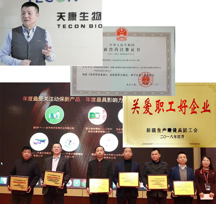 天康生物先后獲得“國(guó)家級(jí)企業(yè)技術(shù)中心”、“國(guó)家高新技術(shù)企業(yè)”、“農(nóng)業(yè)產(chǎn)業(yè)化國(guó)家級(jí)重點(diǎn)龍頭企業(yè)”、“國(guó)家生物制品工程實(shí)驗(yàn)室”、“國(guó)家飼料技術(shù)研發(fā)分中心”、“全國(guó)獸用生物制品10強(qiáng)企業(yè)”、“全國(guó)飼料工業(yè)30強(qiáng)企業(yè)”、“全國(guó)養(yǎng)豬行業(yè)百?gòu)?qiáng)企業(yè)”、“國(guó)家生豬核心育種場(chǎng)”、“國(guó)家高新技術(shù)產(chǎn)業(yè)化十年成就獎(jiǎng)”等榮譽(yù)。